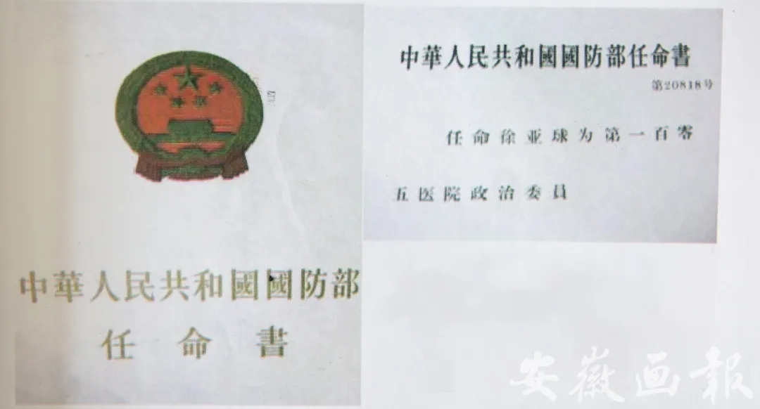1958年10月,徐亚球调任解放军105医院时的任命书