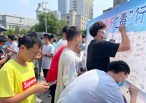 此次活动,共计800多名同学积极参与,同学们纷纷扫码关注禁毒小程序,在签名板上签下姓名并拍照纪念表明自己拒绝毒品的决心。( 杨田倩 陈正 仲名山 雨静)