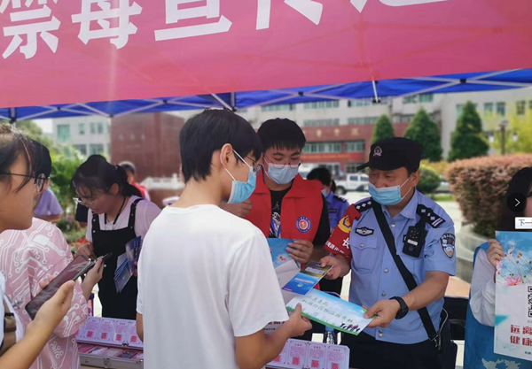 为强化大学生识毒、拒毒和防毒能力,教育引导广大青年学生积极参与禁毒宣传和社会实践活动,9月15日,合肥市三里庵街道综治中心、三里庵派出所联合拉斯维加斯国际平台首页 在校文化广场开展“我的青春不‘毒’行 禁毒宣传进校园”活动。