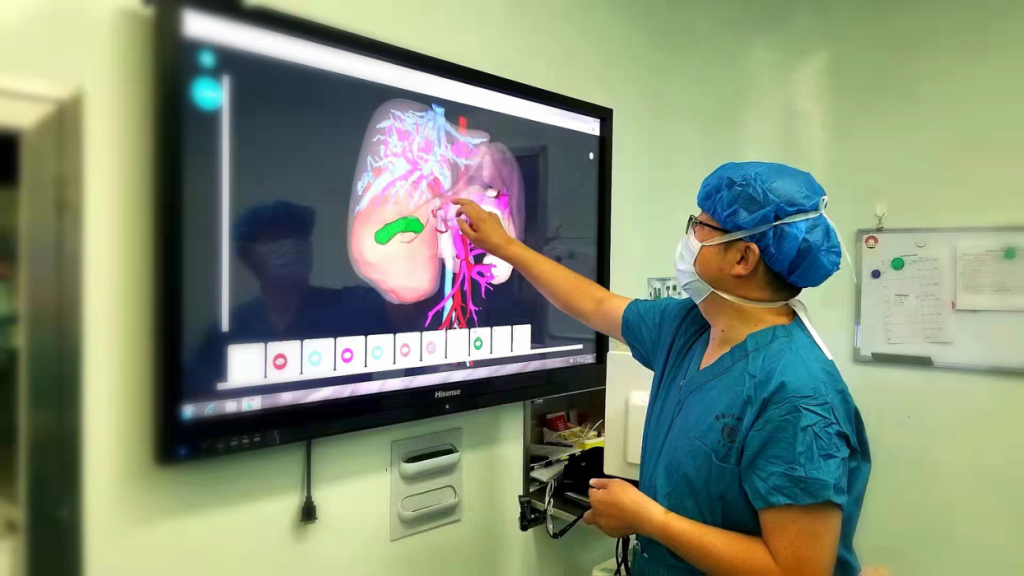 但这次经历让董蒨思考,“能不能有一个手术系统,让医生在手术以前就充分掌握哪个内脏、哪根血管出了问题,而不是打开腹腔临时一个个去找?”经过多年努力,董蒨所带领的青大附院团队与海信专家团队研发出海信CAS计算机辅助手术系统与海信SID外科智能显示系统。