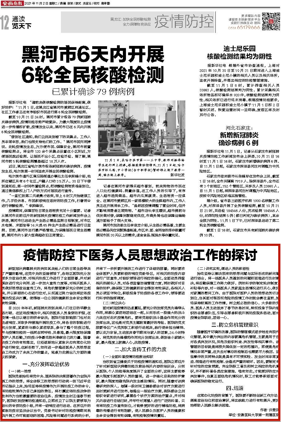 安徽商报:疫情防控下医务人员思想政治工作的探讨