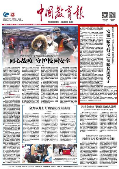 中国教育报、光明网、中国教育报客户端:安徽“暖冬行动”情暖贫困学子
