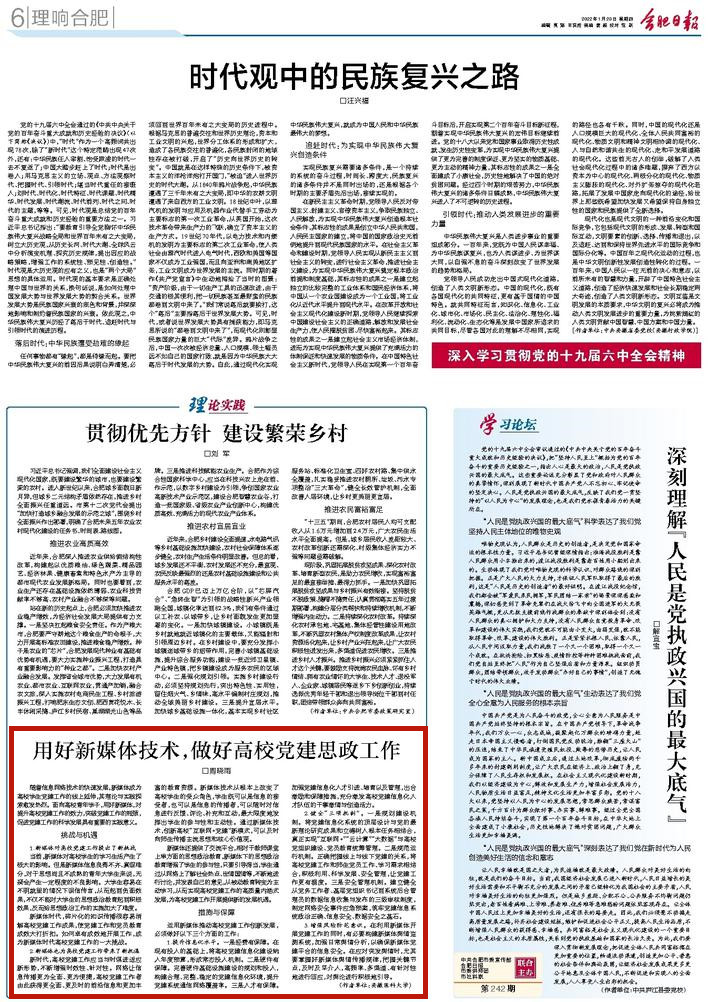 合肥日报:用好新媒体技术,做好高校党建思政工作