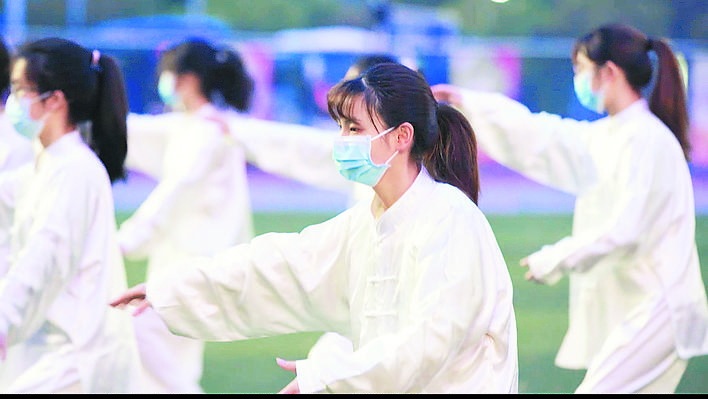 校园里的大学生们在紧张的学习之余,开启了在校生活新模式。4月2日晚,大学生太极拳教学训练团来领“舞”,各学院训练队依次接力,共同擦亮该校“新六艺”素质教育行动——“太极拳人人练”的品牌。随着太极拳音乐响起,大学生们走起整齐的太极拳步伐,动作舒展灵活、充满朝气。