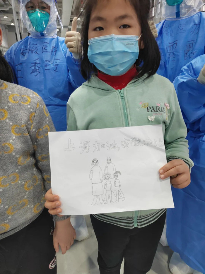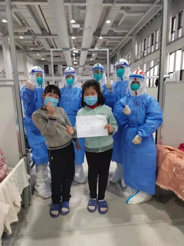 让我感动的是,舱内的孩子从七岁到十几岁,住在方舱里乖乖带着口罩,从来不吵闹,有的孩子之间还结下了深厚的友谊。我们把我们自己苹果和酸奶送给他们,他们则会把自己画的画送给我们,一张张天真的笑脸在我们心底泼洒下大片大片的阳光。更多的时候,他们安静地上着网课,写着作业,此情此景让人动容。少年强则国强,方舱的孩子啊,在你们之后的记忆里,会记得这段特殊的日子,你们没有因为被隔离,而虚度了时光,放弃了学业,你们就是我们守护这里的最大理由!
