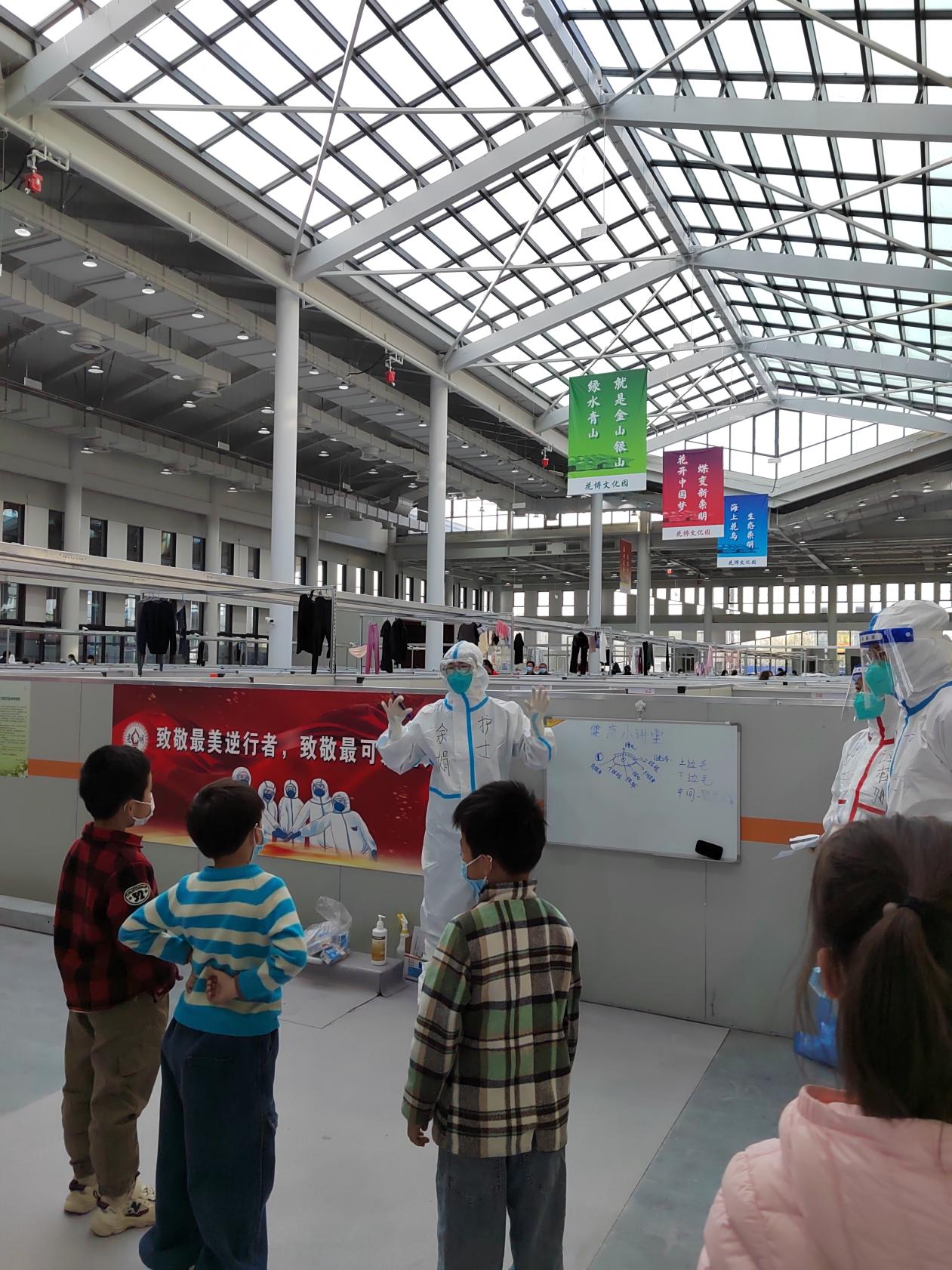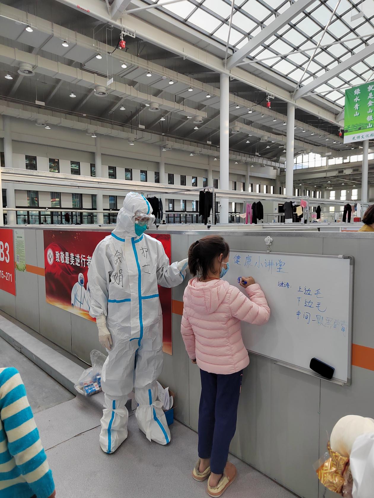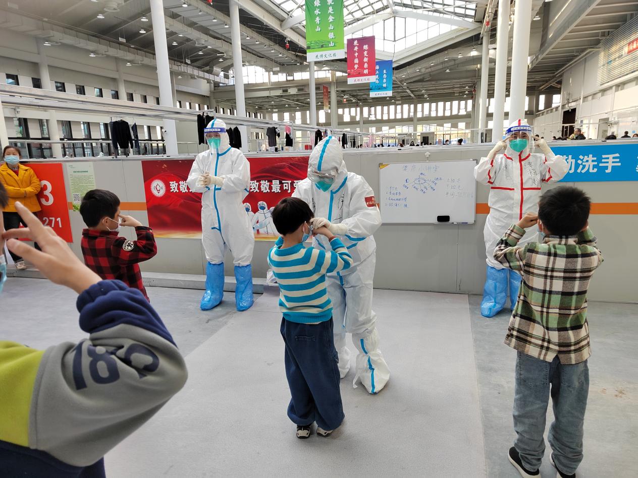 孩子们目光炯炯地看着“大白”老师,眼神里全是对未知世界的渴求,这是上海复兴馆方舱医院安医大一附院方舱院区儿童护理小组开展的“健康小课堂”上的暖心一幕。