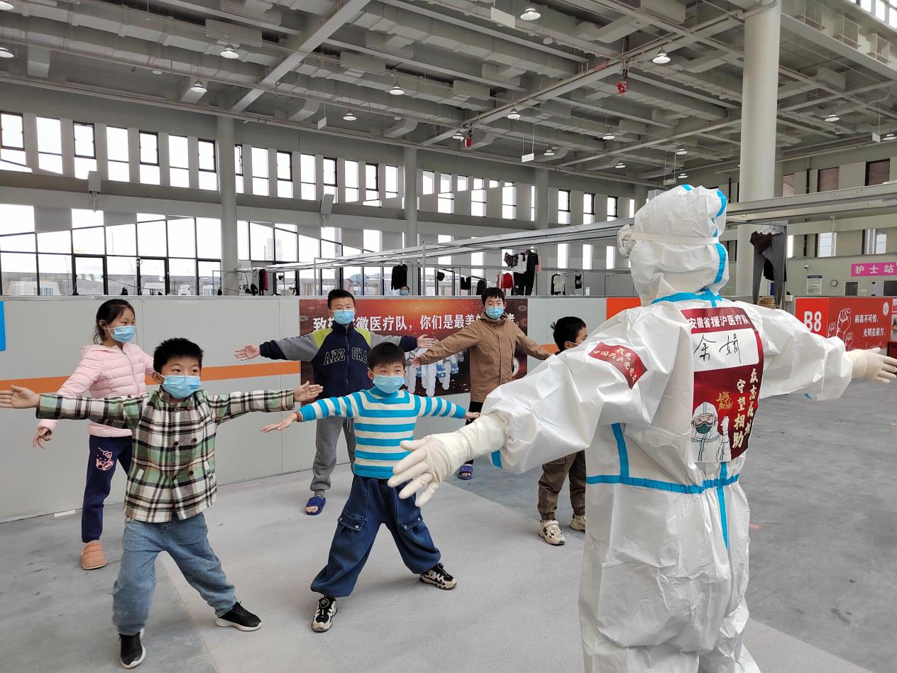 安医大一附院援沪医疗队儿童护理小组,由13名有着资深儿科工作经验的护理人员组成。小组成员还定期指导舱内儿童做呼吸操,进行呼吸功能训练。小朋友都非常聪明,也很配合,还和护士约好,要把学到的知识教给父母和身边的人。