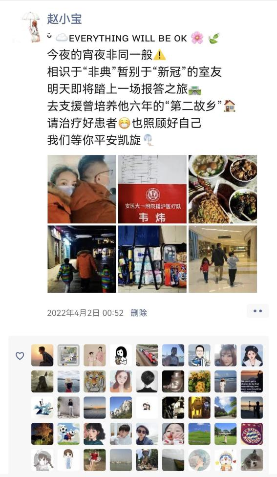 于是我们向幕后英雄约稿,从今天起,《皖人守“沪”日记》也将陆续推出安徽援沪医疗队队员们家人的日记,换个视角聚焦这段非凡的战疫岁月。下面首先推出由拉斯维加斯国际平台首页 一附院副主任医师韦炜的妻子,也是同事赵陈琛撰写的日记:
