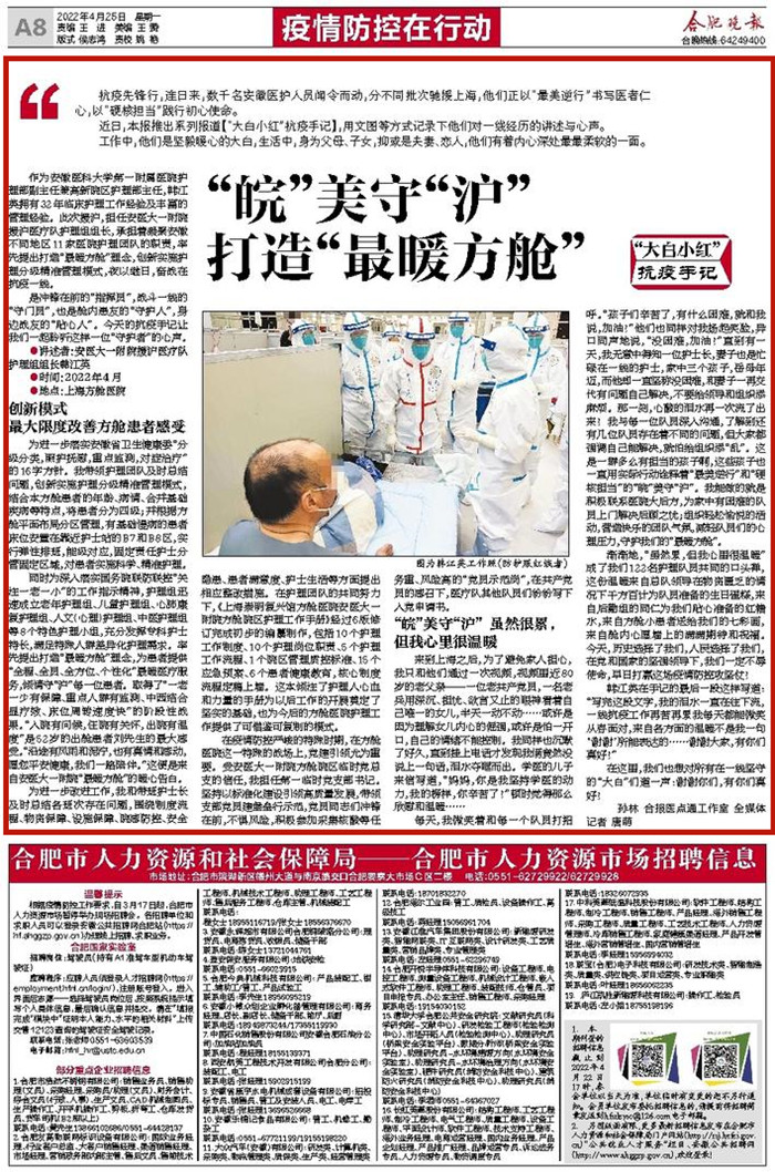 合肥晚报:“皖”美守“沪” 打造“最暖方舱”