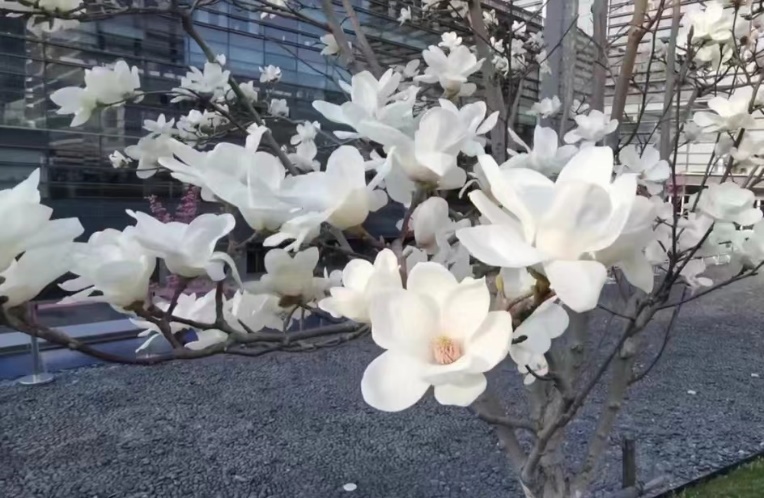 我从春天走来,来到白玉兰盛开的上海。白玉兰是上海的市花,白花如玉,香郁似兰。她们倚立枝头,热烈绽放,透着一往无前的孤勇。就如正处于疫情下的上海人民,备受考验、奋勇向前,却始终保持着优雅、不卑不亢的姿态。在医疗队驻地,位于青浦区的上海青少年活动营地“东方绿舟”,每一位工作人员不惧烈日与暴雨,每天准时在采集点等待我们为他们采集核酸样本,即便工作中优势遇到户外光线太强或太弱影响扫描核酸码速度,网络断开、手机无法扫描等问题耽搁了时间,他们从不埋怨,每一次采集结束都对我们说“谢谢”。东方绿舟“地球村”的老师们放下教鞭,化身“大白”志愿者,为隔离点的学生送饭送药,背着几十斤的消毒装备一个个房间为我们引路、消杀,他们面罩被雾气覆盖,衣服被汗水浸透,肩膀也被消毒装备勒出了深深的痕迹。甚至东方绿舟的领导也穿上了隔离衣,戴上防护面罩,开起了观光游览车,做起我们移动核酸采样站的司机。疫情之下,驻地的工作人员团结一心,没有一个人独善其身,每一个人都明白唯有众志成城,才能打赢这场战疫。