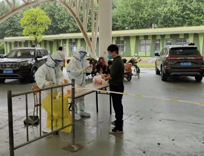 我从九千多万名共产党员中走来,作为医院感染科党员先锋岗,义不容辞地承担起“抗疫先锋”的责任。疫情当下,我必须冲在最前头,才能不辜负党组织的信任和培养。我始终牢记“疫情是命令,防控是责任”。4月21日,结束一天的工作任务后,晚上19:30又接到15分钟后外出环境采样的任务,我和其他几名队员放下刚吃了几口的泡面,重新回到玻璃房整理好行装出发。防护服下的我被夜色包围,深一脚浅一脚,在湿滑的三层厨房重地,完成重点部位物表核酸采样。采样结束,因为一名后勤人员核酸检测时阳时阴的结果,校方请求我们为她进行口咽及鼻咽双重核酸检测复核,这是之前没有提到的。在和我一同前来的援沪医疗队员、感控医生吴贻乐同意下,我毫不犹豫地向前方昏暗的路灯下走去。栅栏将我和这名后勤人员隔开,她在那头,我在这头,我温柔而又耐心地为她做完了采样。不仅为了她,也为这里所有人的安全和健康。这是一名共产党员的责任,也是我的荣耀,做一个勇于担当、敢于担当的人,不负青春、不负党。