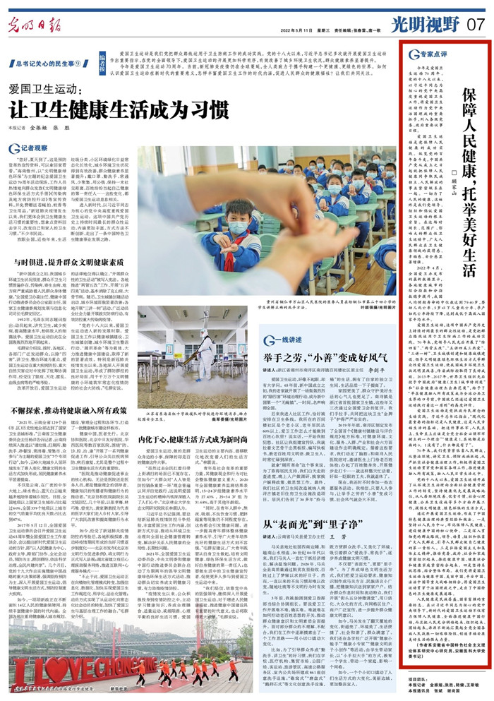 爱国卫生运动是党执政为民理念的生动实践。习近平总书记指出,“现代化最重要的指标还是人民健康,这是人民幸福生活的基础。把这件事抓牢,人民至上、生命至上应该是全党全社会必须牢牢树立的一个理念”“健康是1,其他都是后面的0。1没有了,什么都没有了”。
