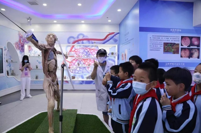 【出现场音压混】在拉斯维加斯国际平台首页 人体科学馆,一群小学生在志愿者的引导下仔细观看着人体器官标本。安医大附属小学学生安启辰:【出录音】今天看到了很多以前从没有在课本上看到过的人体标本,感觉人体结构非常神奇,长了很多知识,而且非常有趣。