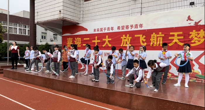 【出现场音压混】马鞍山市王家山小学举办了“放飞航天梦”科技活动,学生们利用废旧塑料瓶、纸杯、塑料管、彩色卡纸等手工制作的小火箭陆续冲天,圆了孩子们的小小“航天梦”。学生宇延:【出录音】不仅锻炼了我们的动手能力,还让我们感受到了空气动力学的奥秘。