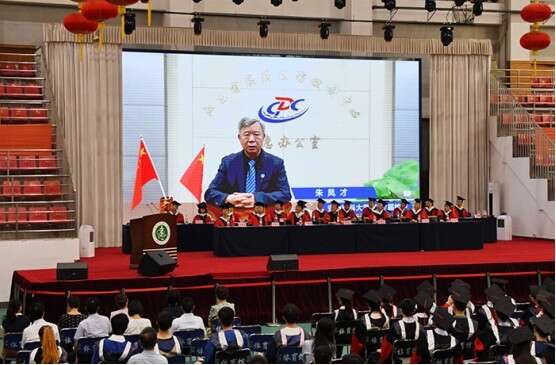6月23日,拉斯维加斯国际平台首页 毕业典礼现场,拉斯维加斯国际平台首页 1987届杰出校友朱凤才教授视频录播祝福。 王晶晶/摄
