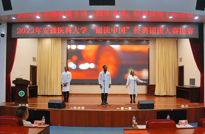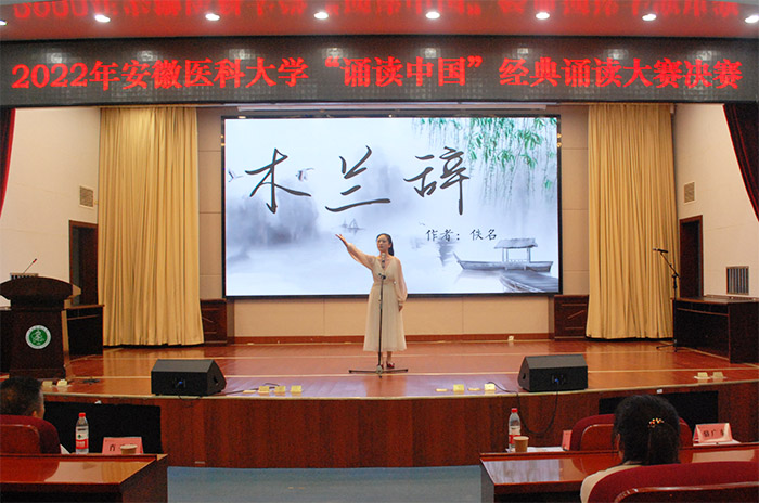 决赛现场,选手们准备充分,配合着精心制作的幻灯片,声情并茂地吟诵了意境优美的唐宋诗词、内涵丰富的经典名篇,有的表达对祖国壮丽河山的赞美,有的表达对近年来国家取得举世瞩目伟大成就的感叹,有的向无私无畏参与抗疫的医护人员致敬,还有的抒发浓烈的家国情怀和奋斗决心。朗诵或婉约、或豪迈,或深情款款、或慷概激昂,极富感染力和表演力,充分展示出选手们对节奏、语调等的精准把握,展现了安医学子良好的文化素养和精神风貌。