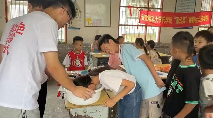 “听学长学姐们说过,他们去年到了八里河镇后发现附近水域很多。虽然及时调整教学内容,增加了防溺水知识宣讲,但是感觉讲得不够全面。今年,我们团队的小伙伴们有备而来,特别搜集和试验了用小脸盆让孩子体验水下呼吸的场景。”该实践团队学生负责人张紫贺说。