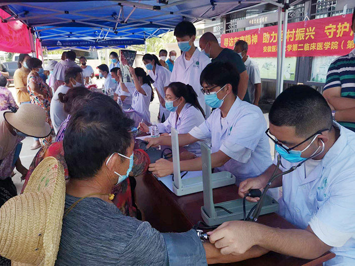 在该校附属医院的支持下,各实践团成员也发挥医学生专业特长,纷纷协助专家进行现场诊断答疑、维持现场秩序、为居民们测量血压,并提供医学相关建议和生活指导,开展乡村振兴及城乡居民医保满意度调研等活动。