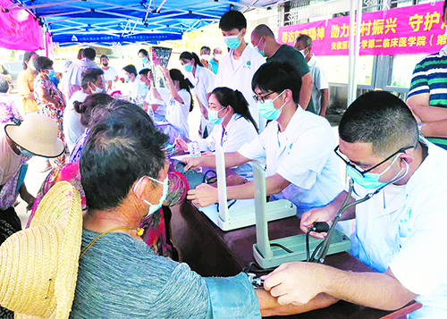 在该校附属医院的支持下,各实践团成员也发挥专业特长,纷纷协助专家进行现场诊断答疑、维持现场秩序、为居民们测量血压,并提供医学相关建议和生活指导,积极开展乡村振兴及城乡居民医保满意度调研等活动。