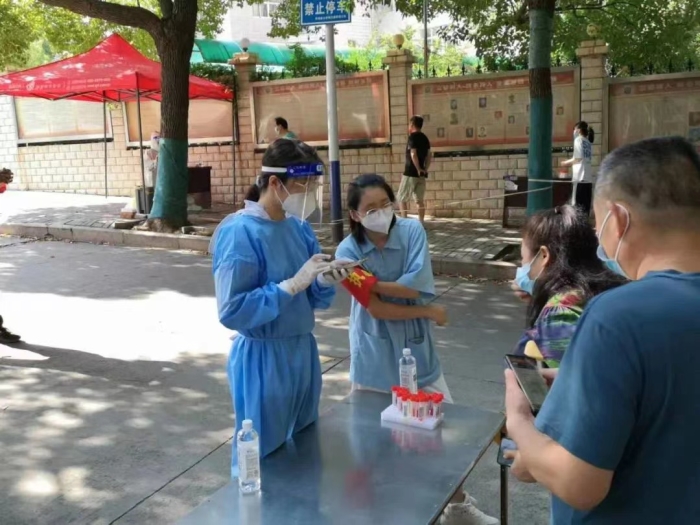 2019级临床医学(“5+3”一体化)专业徐亮子同学加入了怀远县文昌社区的疫情防控志愿服务工作