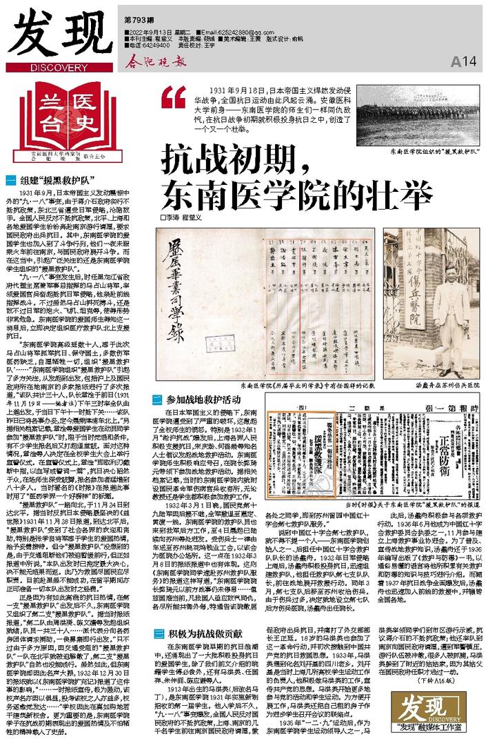 前身——东南医学院的师生们一样同仇敌忾,在抗日战争初期就积极投身抗日之中,创造了一个又一个壮举。