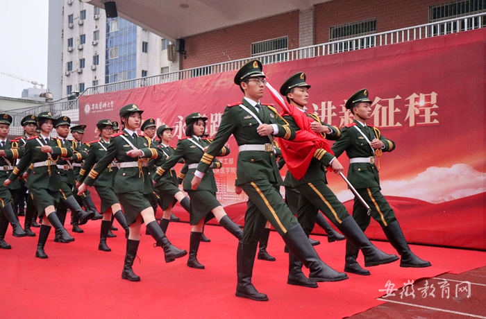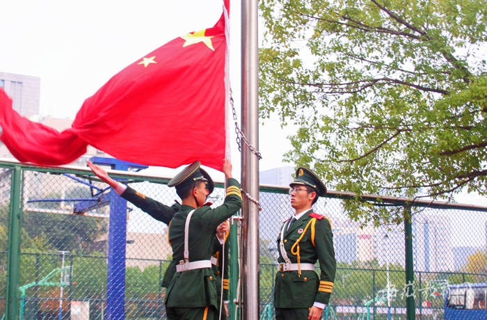 7时许,国旗护卫队着装整齐,迈着矫健的步伐,护卫着鲜艳的五星红旗入场。伴随着庄严的《义勇军进行曲》,五星红旗冉冉升起。师生们精神饱满,齐行注目礼,展现对祖国的无限热爱。