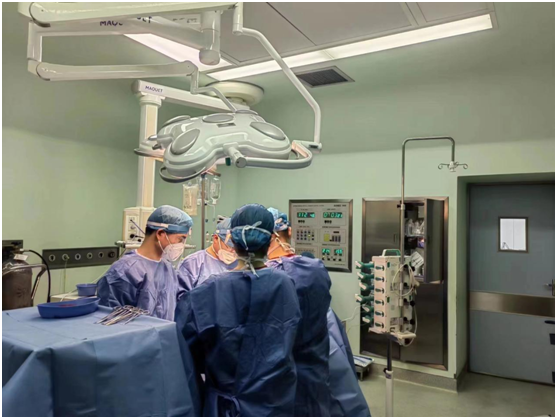 时间一分一秒过去,手术医师、巡回护士、器械护士、麻醉医师在充分做好个人防护的前提下,分工协作、默契配合,整个手术过程有条不紊的顺利进行,术中患者生命体征平稳。