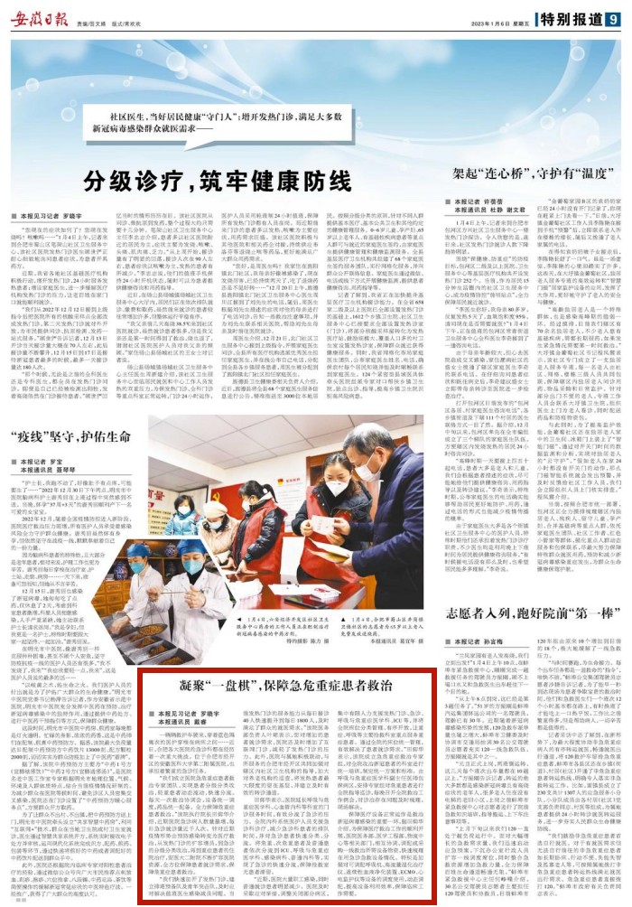 安徽日报:凝聚“一盘棋”,保障急危重症患者救治