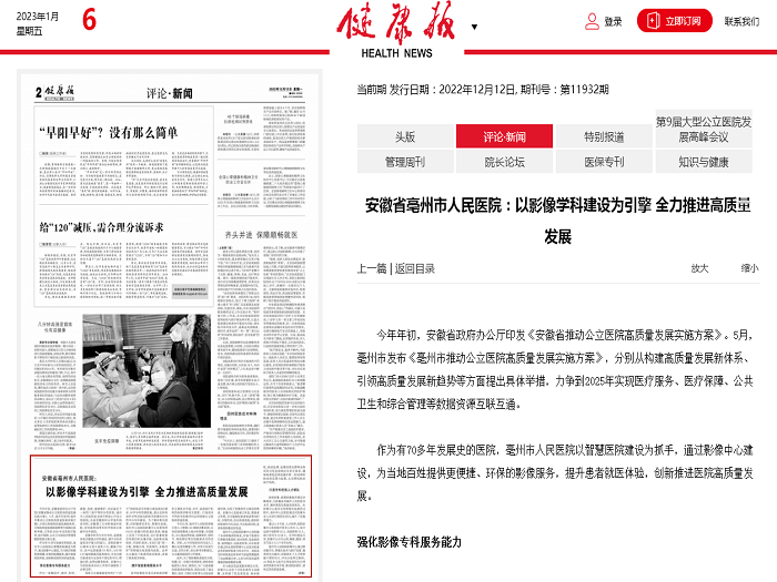健康报:安徽省亳州市人民医院:以影像学科建设为引擎 全力推进高质量发展