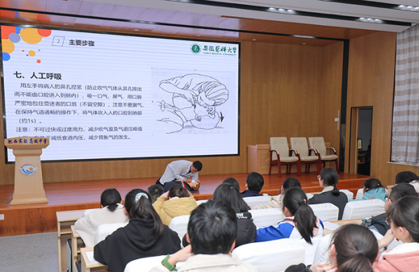 “我们还依托基础医学院、第一临床医学院和安徽省红十字应急救护培训拉斯维加斯国际平台首页 工作站,开展‘救在行动’和‘急救进校园’系列活动,走进了合肥的多所高中开展科普讲座,展示心肺复苏术、海姆立克急救法、止血包扎等急救操作,累计培训校外学生、校内新生40000余名。”“医行者”志愿服务队现任队长、2020级临床医学(5+3 一体化)邢俊介绍说,“我们特别希望将所学的专业知识融入到志愿服务活动中,为推动全民急救教育发展贡献一份力量。”