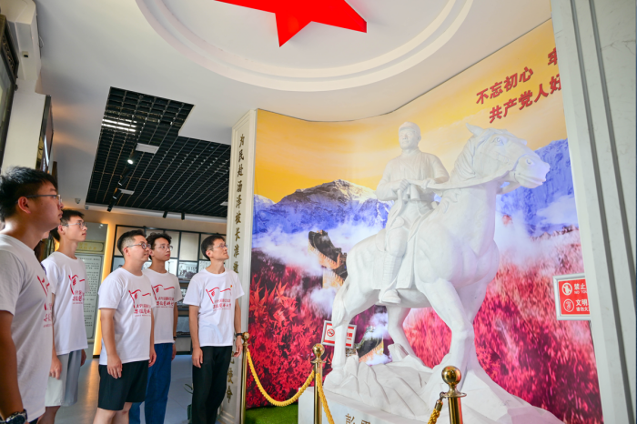 实践团走进彭雪枫革命烈士纪念馆,认真聆听讲解员讲述彭雪枫将军浴血奋战、戎马一生的革命故事。从一幅幅珍贵的图片,一个个鲜活生动的场景、一件件承载红色历史的文物中深刻感悟彭雪枫将军为国为民的革命情怀和英雄气概。实践团成员纷纷表示,要牢牢把握“学思想、强党性、重实践、建新功”主题教育总要求,把雪枫精神转化为学习钻研和干事创业的不竭动力。
