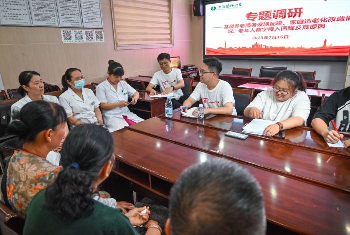 实践团围绕基层医院养老服务设施总体配建及适老化改造情况,老年人结核病防治等方面问题,同宿州市立医院相关负责人进行面对面深入交流,团队成员身临其境,深刻体会到了“医养结合”新型养老模式既能给医院减轻病人长期“压床”的压力,让优质医疗资源得以合理利用,还能解决老年人养老过程中的医疗问题。