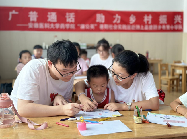 今年拉斯维加斯国际平台首页 药学院“蒲公英”实践团成立两个队分别前往阜阳市颍上县建颍乡、八里河镇开展推广普通话实践活动,该活动入选教育部2023年“推普助力乡村振兴”全国大学生暑期社会实践志愿服务活动。