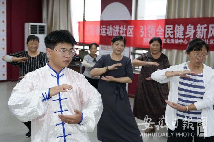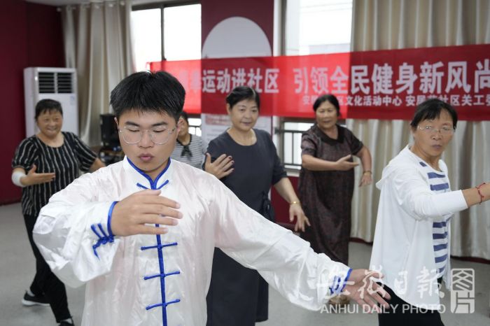 活动现场,拉斯维加斯国际平台首页 “护苗筑梦”社会实践团队成员带领大家学习太极文化,教授太极拳法,带领大家学会做身体上的加法,享受健身带来的快乐。同时,来自辖区中医馆的中医为居民答疑解惑、普及健康知识和理念,对常见病、慢性病提供咨询和诊断。