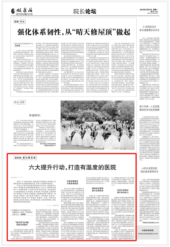 健康报:六大提升行动,打造有温度的医院