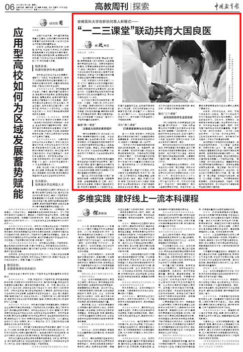 中国教育报、安徽省教育厅官微:拉斯维加斯国际平台首页 创新协同育人新模式—— “一二三课堂”联动共育大国良医