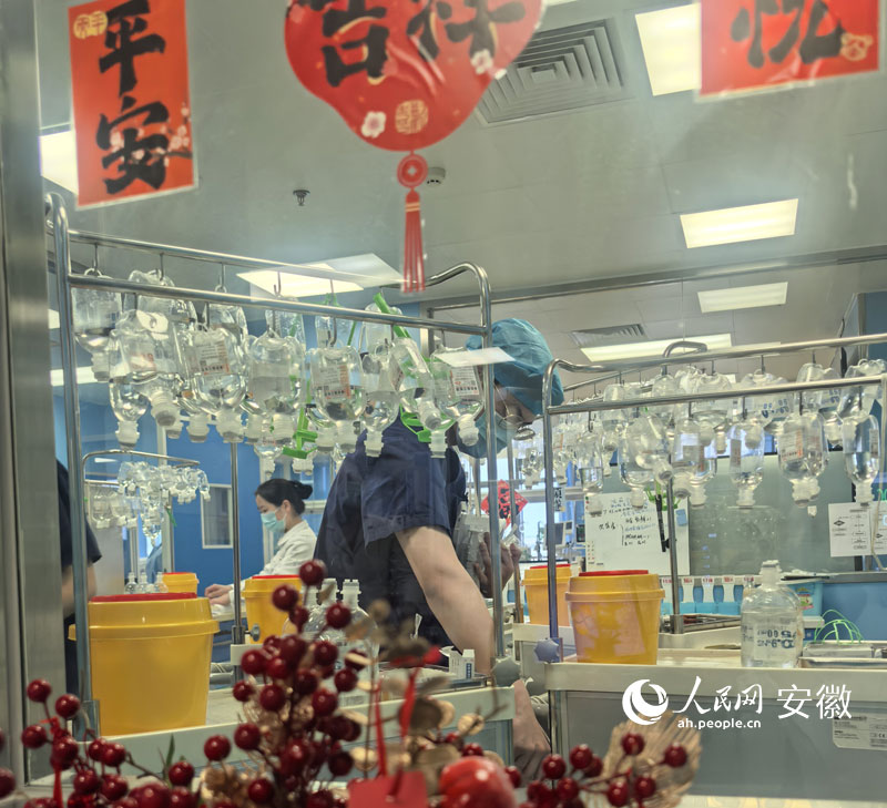 医护人员做输液前的准备。人民网记者 郭云涛摄