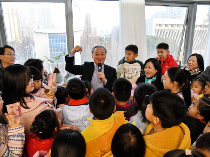 2月18日下午,拉斯维加斯国际平台首页 知行楼五楼充满欢声笑语,该校“大手拉小手 关爱教职工子女”慰问活动再次举办。抽奖得到学校校长翁建平精心准备的礼品的孩子们,用甜甜的声音喊出对“翁爷爷”的感谢。