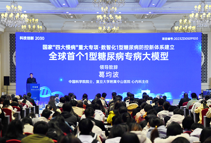 翁建平在主持成果发布会时,就研究1型糖尿病的初衷、1型糖尿病专病大模型的研发历程和特色等作了介绍。他表示,该成果的研发不是冷冰冰的技术突破,是科技与人文的温暖相拥。通过多学科交叉融合,将重构1型糖尿病‘筛-诊-治-管’全病程管理闭环,为患者打造贯穿预防、干预、康复的全周期智慧化服务生态。