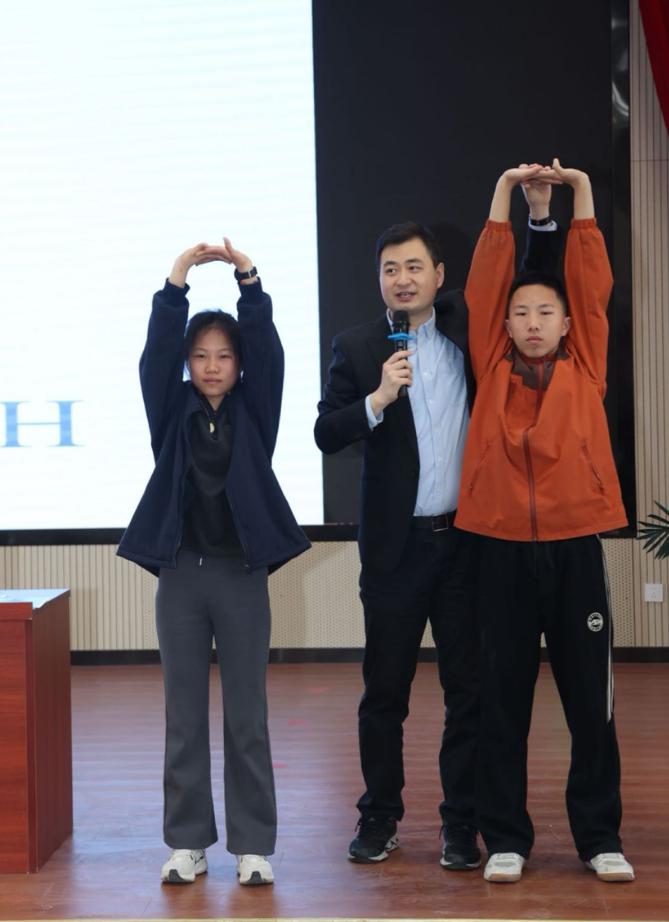 合肥活动现场,运医所助理研究员姚天奇通过动态模型展示与趣味互动,向同学们揭秘脊柱侧弯的成因,并教授“脊柱与视力健康操”。这套健康操经过5年临床验证,能够有效改善青少年的体态和用眼习惯,参与学生的日均锻炼达标率显著提升。